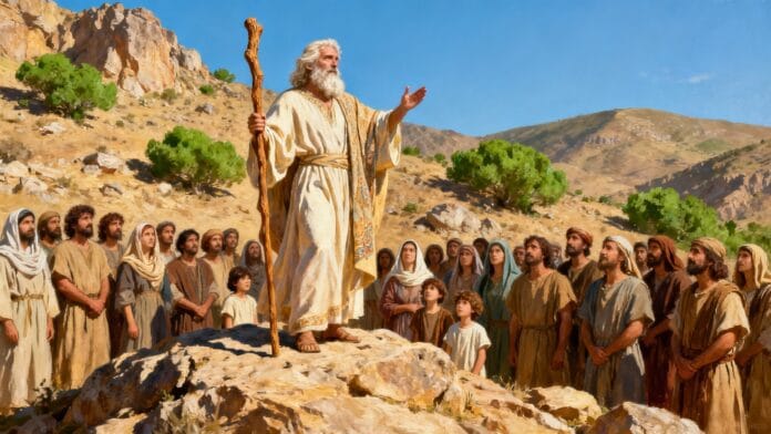 1 Mose rief ganz Israel zusammen und sprach zu ihnen: «Ihr habt alles gesehen, was der Herr vor euren Augen im Land Ägypten getan hat, am Pharao, an allen seinen Dienern und an seinem ganzen Land.“, 2 die großen Prüfungen, die eure Augen gesehen haben, diese Zeichen und großen Wunder. 3 Aber der Herr hat euch bis heute kein Herz gegeben, das versteht, keine Augen, die sehen, keine Ohren, die hören. 4 Ich führte euch vierzig Jahre lang durch die Wüste; eure Kleider sind nicht verschlissen, und eure Sandalen sind an euren Füßen nicht verschlissen., 5 Ihr habt kein Brot gegessen und keinen Wein oder alkoholische Getränke getrunken, damit ihr erkennt, dass ich der Herr, euer Gott, bin. 6 So kamt ihr an diesen Ort. Sehon, der König von Heschbon, und Og, der König von Baschan, kamen uns entgegen, um gegen uns zu kämpfen, und wir besiegten sie. 7 Wir nahmen ihr Land in Besitz und gaben es den Rubenitern, den Gaditern und der Hälfte des Stammes der Manassiter als Erbe. 8 Deshalb achtet auf die Worte dieses Bundes und setzt sie in die Tat um, damit ihr in allem, was ihr tut, Erfolg habt. 9 Heute steht ihr alle vor dem Herrn, eurem Gott, eure Anführer, eure Stämme, eure Ältesten, eure Offiziere, alle Männer Israels., 10 eure Kinder, eure Frauen und der Fremde, der sich inmitten eures Lagers befindet, vom Holzfäller bis zum Wasserschöpfer: 11 Ihr steht hier, um den Bund des Herrn, eures Gottes, und seinen Eid einzugehen, den Bund, den der Herr, euer Gott, heute mit euch schließt., 12 um euch heute zu seinem Volk zu machen und um sein Gott zu sein, wie er es euch gesagt und euren Vätern Abraham, Isaak und Jakob geschworen hat. 13 Nicht dir allein gehe ich dieses Bündnis ein und leiste diesen Eid., 14 Es gilt aber dem, der heute hier mit uns vor dem Herrn, unserem Gott, steht, und dem, der heute nicht hier mit uns ist. 15 Ihr wisst ja, wie wir im Land Ägypten lebten und wie wir inmitten der Völker zogen, unter denen ihr auch gezogen seid: 16 Du hast ihre Gräueltaten und ihre Götzenbilder gesehen, aus Holz und Stein, aus Silber und Gold, die in ihren Häusern sind. 17 Darum soll es unter euch keinen Mann, keine Frau, keine Familie und keinen Stamm geben, dessen Herz sich heute von dem Herrn, unserem Gott, abwendet, um den Göttern dieser Völker zu dienen; es soll keine Wurzel unter euch geben, die Gift und Wermut hervorbringt. 18 Niemand soll sich nach dem Hören der Worte dieses Eides in seinem Herzen einbilden und sagen: «Ich werde Frieden, »…auch wenn ich in der Härte meines Herzens wandle“, damit der Gesättigte den Durstigen in sich aufnimmt. 19 Der Herr wird diesem Mann nicht vergeben, sondern der Zorn und die Eifersucht des Herrn werden gegen ihn entbrennen, alle Flüche, die in diesem Buch geschrieben stehen, werden auf ihm lasten, und der Herr wird seinen Namen unter dem Himmel auslöschen. 20 Der Herr wird ihn aus allen Stämmen Israels aussondern und ihn dem Unheil preisgeben, gemäß allen Flüchen des Bundes, die in diesem Buch des Gesetzes geschrieben stehen. 21 Die nächste Generation, eure Kinder, die nach euch geboren werden, und der Fremde, der aus einem fernen Land kommt, werden es sehen, wenn sie die Plagen und Krankheiten dieses Landes sehen, mit denen der Herr es geschlagen hat., 22 von Schwefel und Salz, von der Verbrennung dieses ganzen Landes, das nicht besät werden kann, keine Frucht bringen wird, auf dem kein Gras wachsen wird, wie es mit der Zerstörung von Sodom, Gomorra, Adam und Zebojim geschah, die der Herr in seinem Zorn und Grimm vernichtete., 23 Alle diese Nationen werden sagen: «Warum hat der Herr dieses Land so behandelt? Woher kommt dieser heftige Zorn?» 24 Und es wird gesagt werden: «Das liegt daran, dass sie den Bund des Herrn, des Gottes ihrer Väter, verlassen haben, den er mit ihnen geschlossen hatte, als er sie aus dem Land Ägypten herausführte.“, 25 Sie gingen hin und dienten anderen Göttern und beugten sich vor ihnen nieder, Göttern, die sie nicht kannten und die ihnen der Herr nicht als Erbe gegeben hatte. 26 Der Zorn des Herrn entbrannte gegen dieses Land, und er verhängte über es alle Flüche, die in diesem Buch geschrieben stehen. 27 Der Herr entwurzelte sie in Zorn, Grimm und großem Unmut aus ihrem Land und warf sie in ein anderes Land, wie wir es heute sehen.» 28 Die verborgenen Dinge gehören dem Herrn, unserem Gott; aber die offenbarten Dinge gehören uns und unseren Kindern für immer, damit wir alle Worte dieses Gesetzes befolgen.