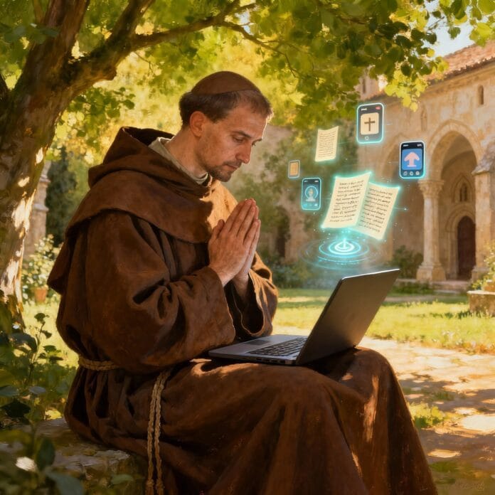 Stellen Sie sich einen Mönch aus dem 12. Jahrhundert vor, der plötzlich die Wunder unserer Zeit entdeckt. digital. Seine erste Reaktion wäre wohl nicht Staunen über unsere hellen Bildschirme, sondern vielmehr die tiefe Erkenntnis einer zeitlosen Wahrheit: Die menschliche Seele sucht stets Gott, ungeachtet der ihr zur Verfügung stehenden Mittel. Diese universelle spirituelle Suche nimmt nun eine revolutionäre Form an, die uralte klösterliche Weisheit mit den unendlichen Möglichkeiten der digitalen Welt vereint. digitale Welt.