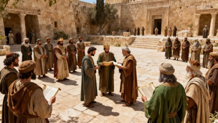 26.16 Der Historiker Josephus (Antike., (Buch XV, Kapitel XIV) spricht von einer Anhöhe oder einer Art Damm, der vom Palast des Königs zum Tempel führte. Ein Wächter stand dem anderen gegenüber. Dies bedeutet wahrscheinlich, dass die Wachposten einander gegenüberstanden.