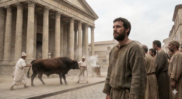 אדם הולך ברחובות טולוז בסביבות שנת 250. הוא חולף על פני הקפיטול שבו כוהנים פגאנים מקריבים פר. שתיקת הנואמים כבר סימנה אותו כאשם. באותו יום, סטורנינוס מסרב לעבוד את האלילים. גופתו תיגרר משם על ידי החיה הזועמת. עדותו, לעומת זאת, תישאר בתוקף לאורך מאות שנים. גם כיום, עשרות עיירות וכפרים ברחבי דרום צרפת נושאים את שמו. סיפורו מאתגר אותנו: עד כמה רחוק אנו מוכנים ללכת למען מה שאנו מאמינים שהוא אמת?