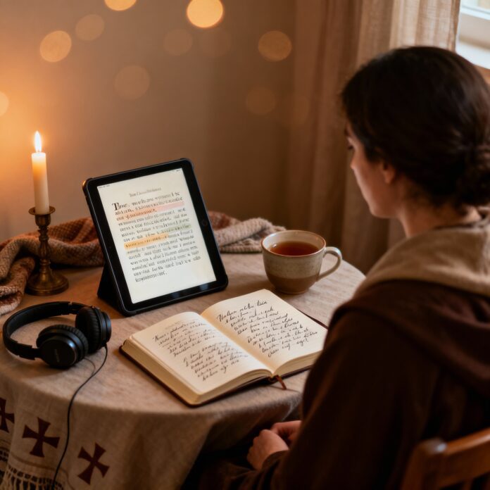 A lectio divina digital adapta-se perfeitamente aos ritmos da vida contemporânea. Seus deslocamentos diários se transformam em peregrinações espirituais, seus intervalos para o café se transformam em oásis contemplativos. Essa flexibilidade elimina a desculpa da falta de tempo, revelando as múltiplas oportunidades de crescimento espiritual escondidas em sua vida cotidiana.
