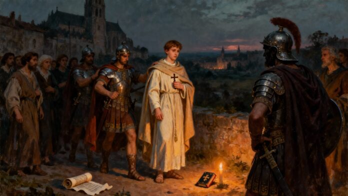 Saint Quentin, jeune Romain envoyé en Gaule au IIIe siècle pour annoncer l’Évangile, meurt à Augusta Veromandum, l’actuelle Saint-Quentin. Sa fidélité silencieuse devient un phare pour tous ceux qui persévèrent malgré l’épreuve.
